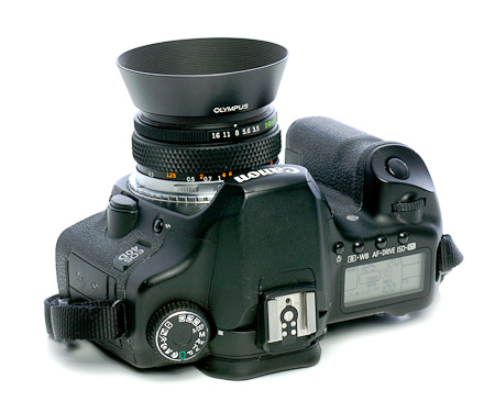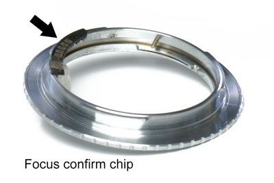 This lens already came with an OM/EOS mount, one with a focus confirm chip. The job of the chip is fool the camera into thinking that an EF lens is attached, and thus switches on the cameras focus confirm system.