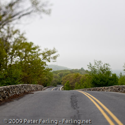 Using a normal lens, especially on a such dreary fogging day, would have required at least f8, 1/30 sec, and a tripod. Not only that, but everything in the shot would have been in focus, and the road, lacking separation, would not have been as dramatic.
