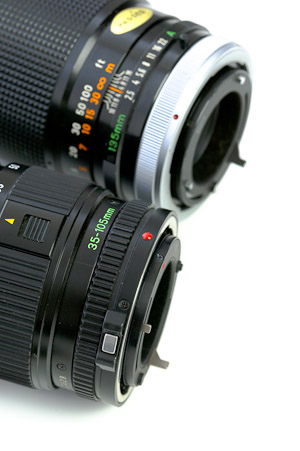 We are going to address the adaptor method here, its pros and cons, using various and most familiar FD lenses, and then comparing some of them to their modern EF equivalents: a 50mm f/1.4, 100mm f/2.8, 135mm f/2.5, and a 35-105mm f/3.5. Including a Vivitar 200mm f3.5 in FD mount just for kicks.