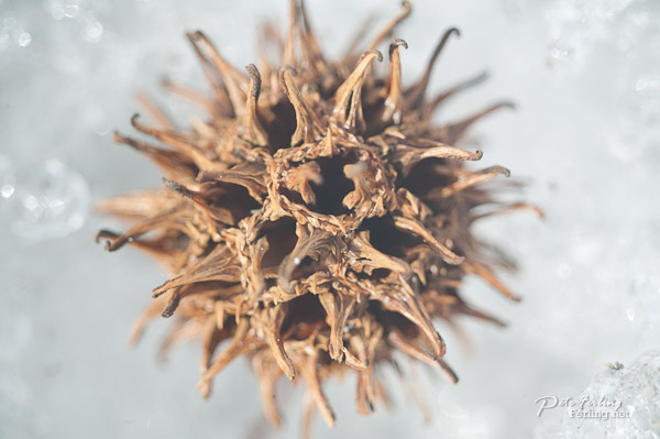 How does it perform as a macro? take a look at the unsharpened and uncorrected shot of the Sweat Gum Tree seed pod below, that I found lying in the snow:
