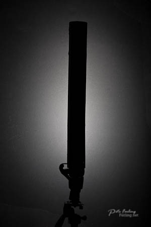 Basically, it's a 3 inch cardboard shipping tube with plastic end caps, the kind that push in and sit flush with the edge. A small two inch window cut along one side. The upper cap, including the tubes interior was painted white, and then lined with tin foil to increase reflectance.
