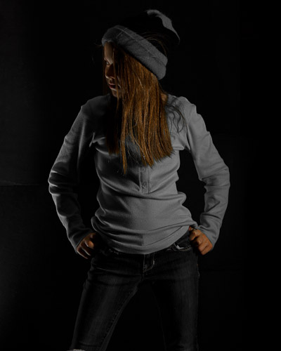 The example below demonstrates the use of strip light on camera right, and an umbrella camera left. The right side of the model is very soft, and left has a hard edge, including spill on the background. The strip light also lights her entire side evenly, and the umbrella has a hot spot with vertical fall-off. While none of these traits are a negative, it's nice to have a device that can prevent or accommodate these kind of features if so desired.