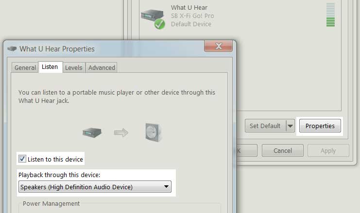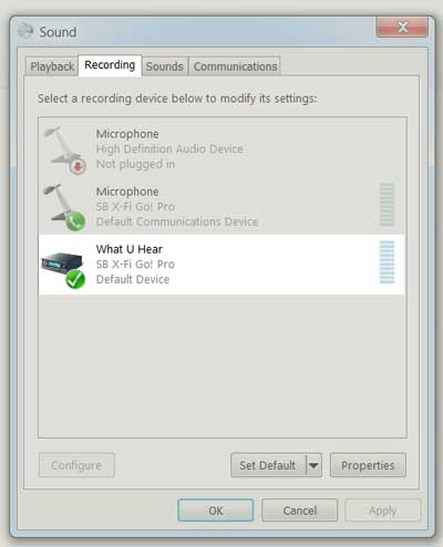 Note: "What U hear" is an application installed via the program disk that was included with the Go! Pro when purchased. However, you can also download it from Creative's website here.